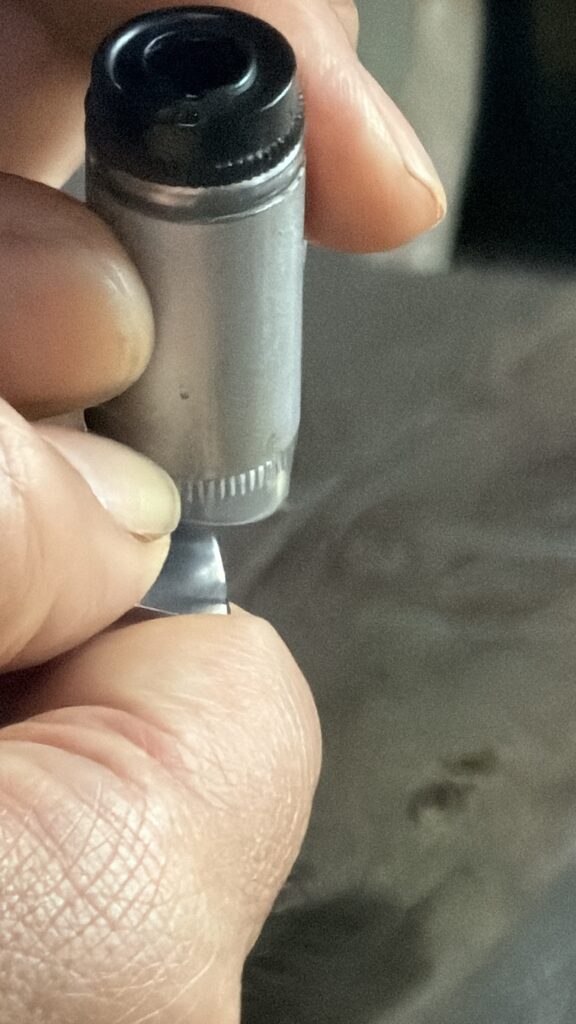 ドキドキしながら研磨した剃刀を見ていただくと 現状を説明して下さって拡大鏡でチェックします。横で見ている私は、ドキドキ!!しているんですよ